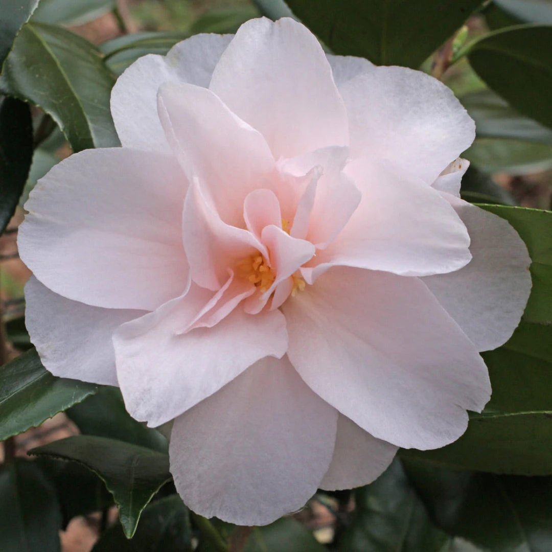 Moonlight Bay Camellia offers an enchanting display of large, semi-double blooms in soft pink, kissed with deeper pink flushes toward the petal edges. These romantic flowers appear from mid-winter to early spring, adding a welcome burst of color when few other plants are in bloom.