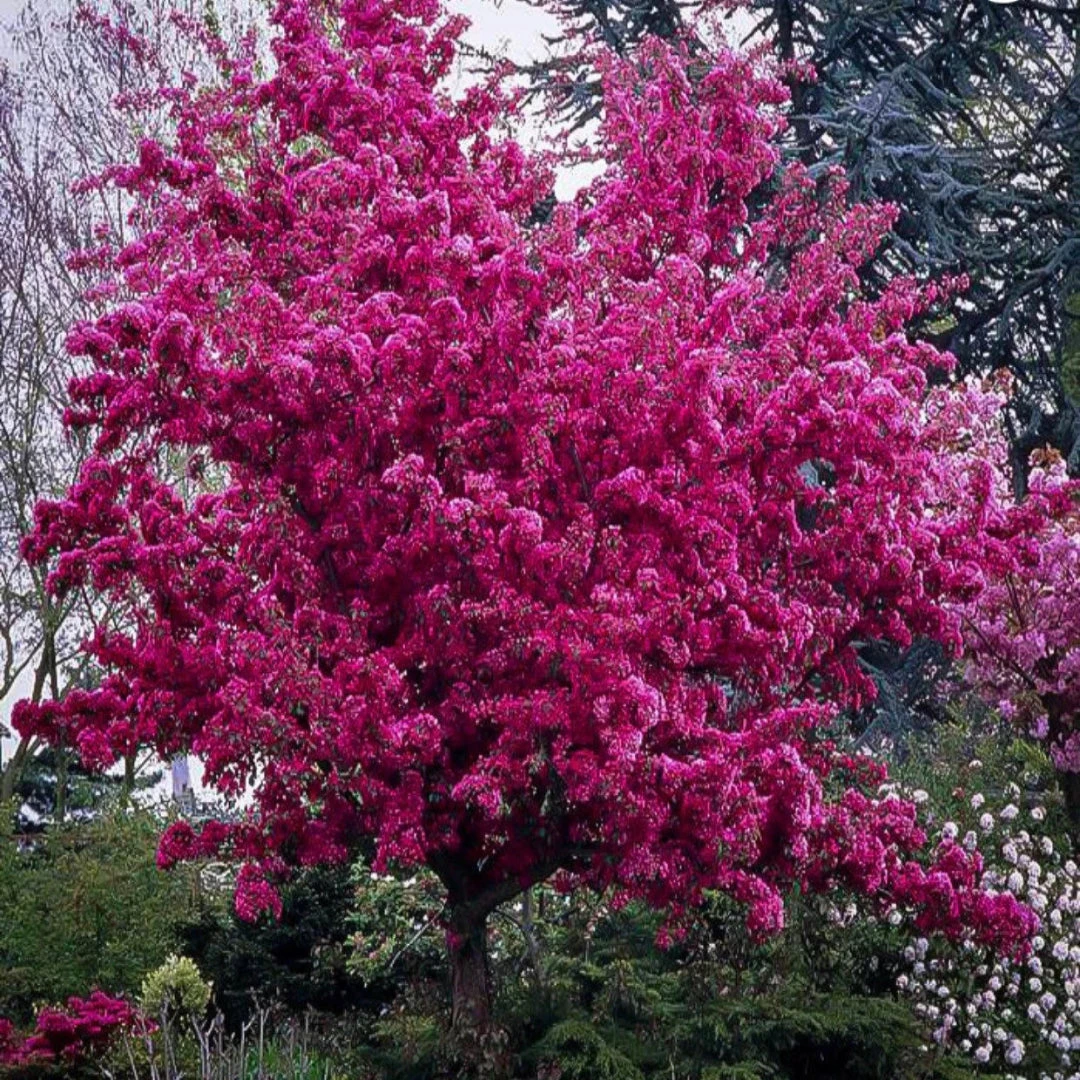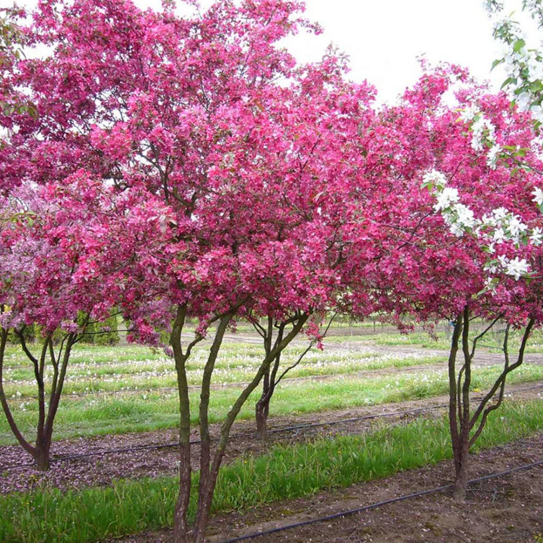 Profusion Crabapple is a beautiful ornamental tree, known for its vivid reddish-pink flowers in spring and bronze-green foliage that turns purple in fall. Its small red fruits persist into winter, attracting birds and wildlife.