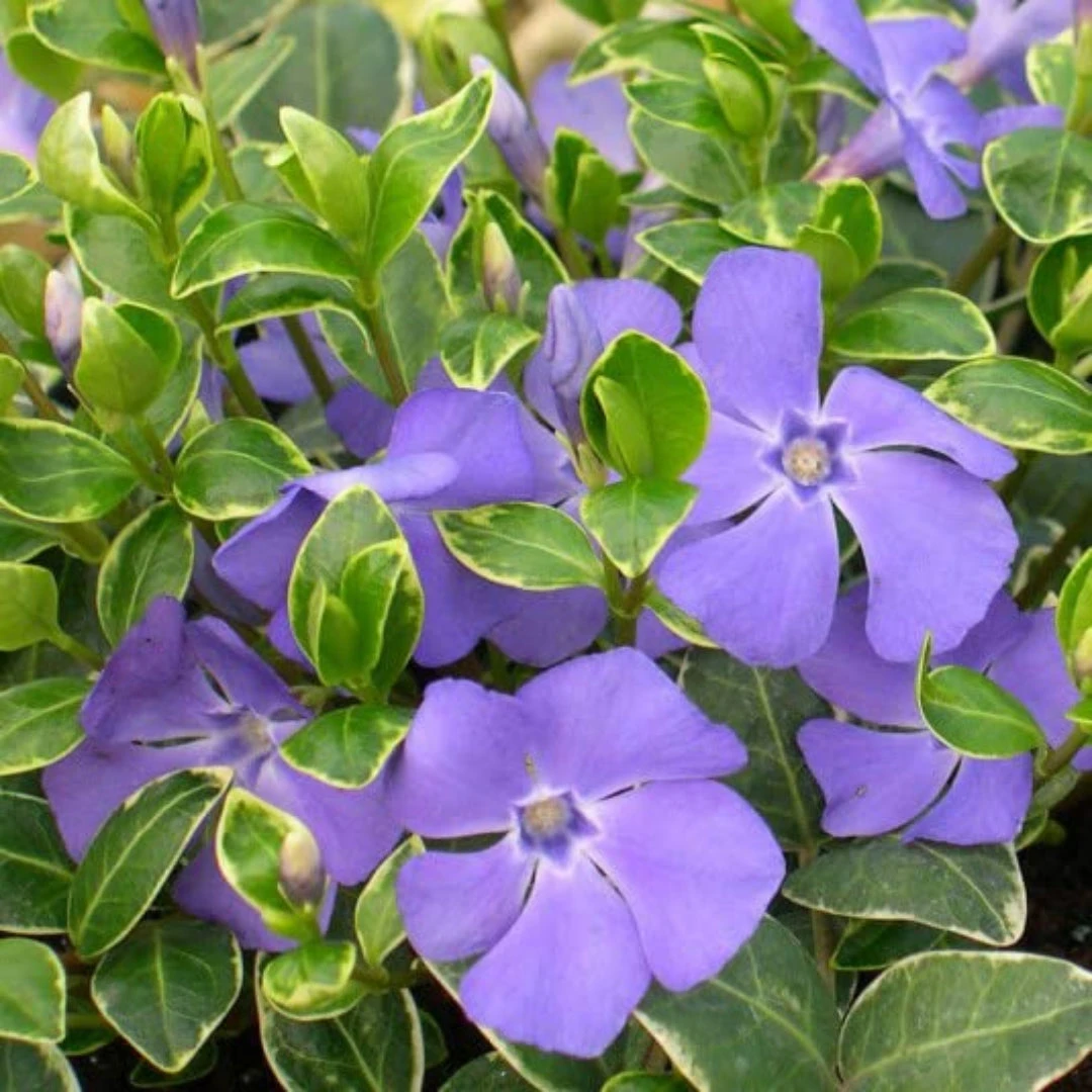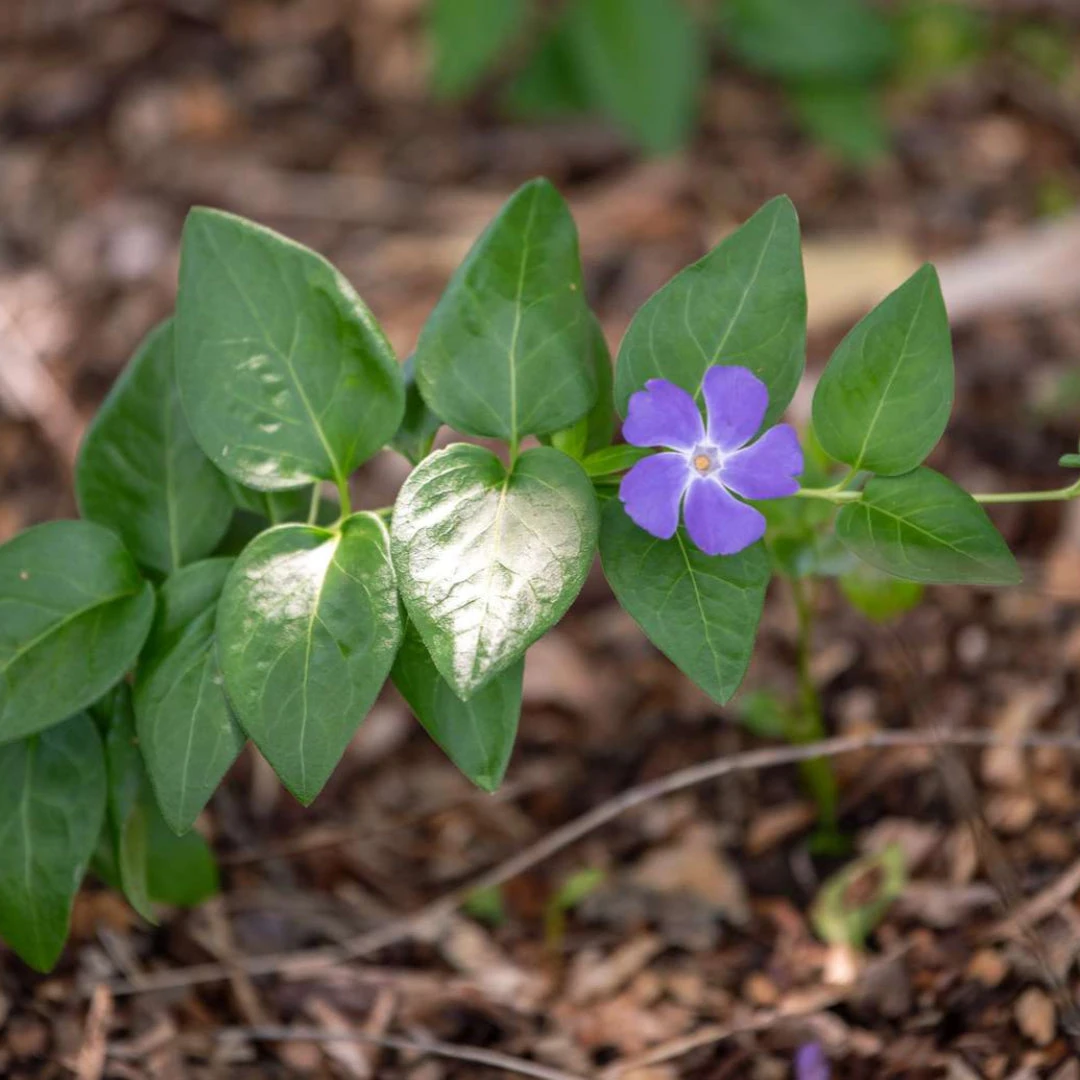Vinca major (Large Leaf Periwinkle) is a vigorous, trailing evergreen groundcover with large glossy leaves and showy violet-blue flowers from spring through summer. It’s perfect for erosion control, shady spots, or under trees. Drought-tolerant once established and fast-growing, it’s an ideal low-maintenance choice for difficult areas.